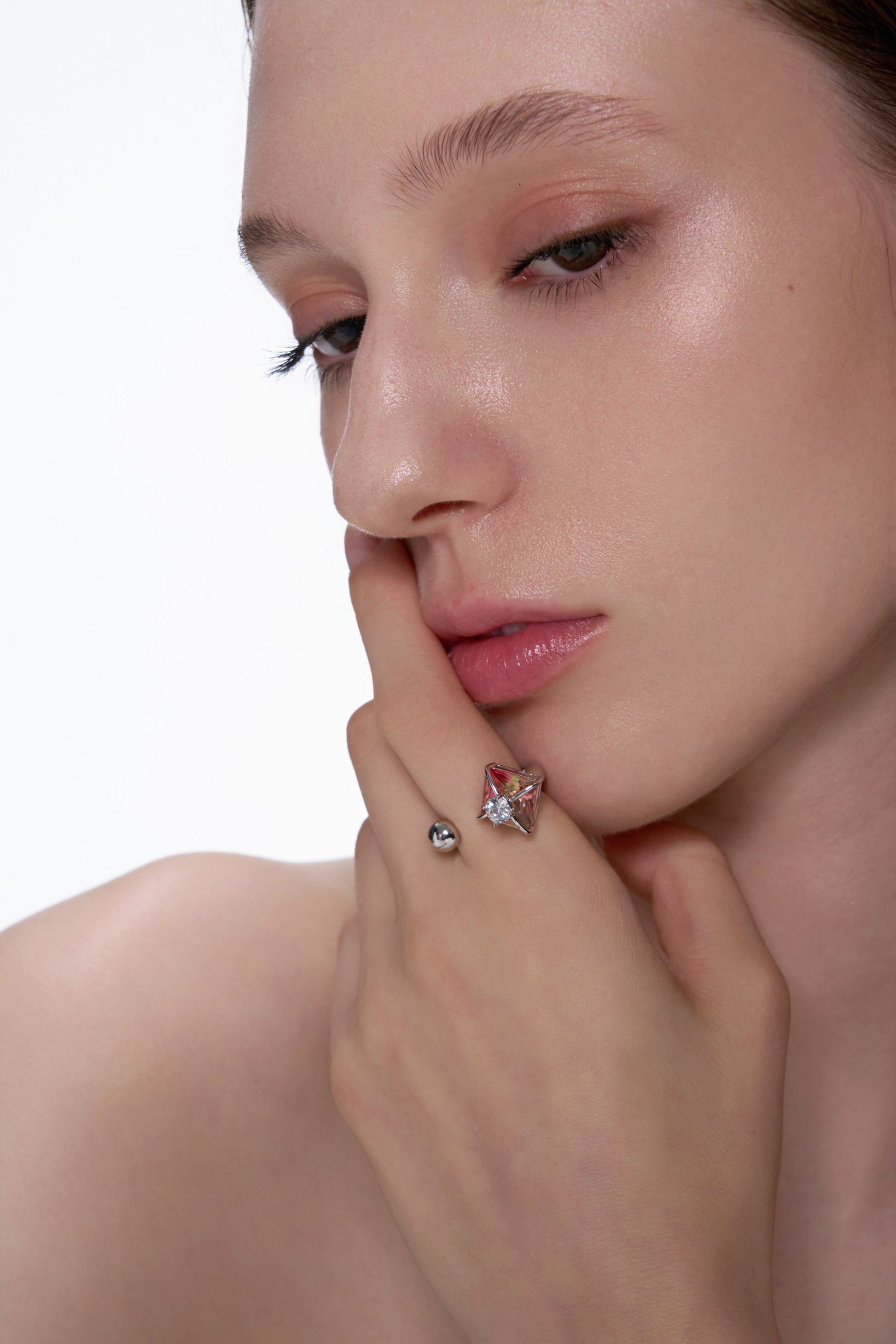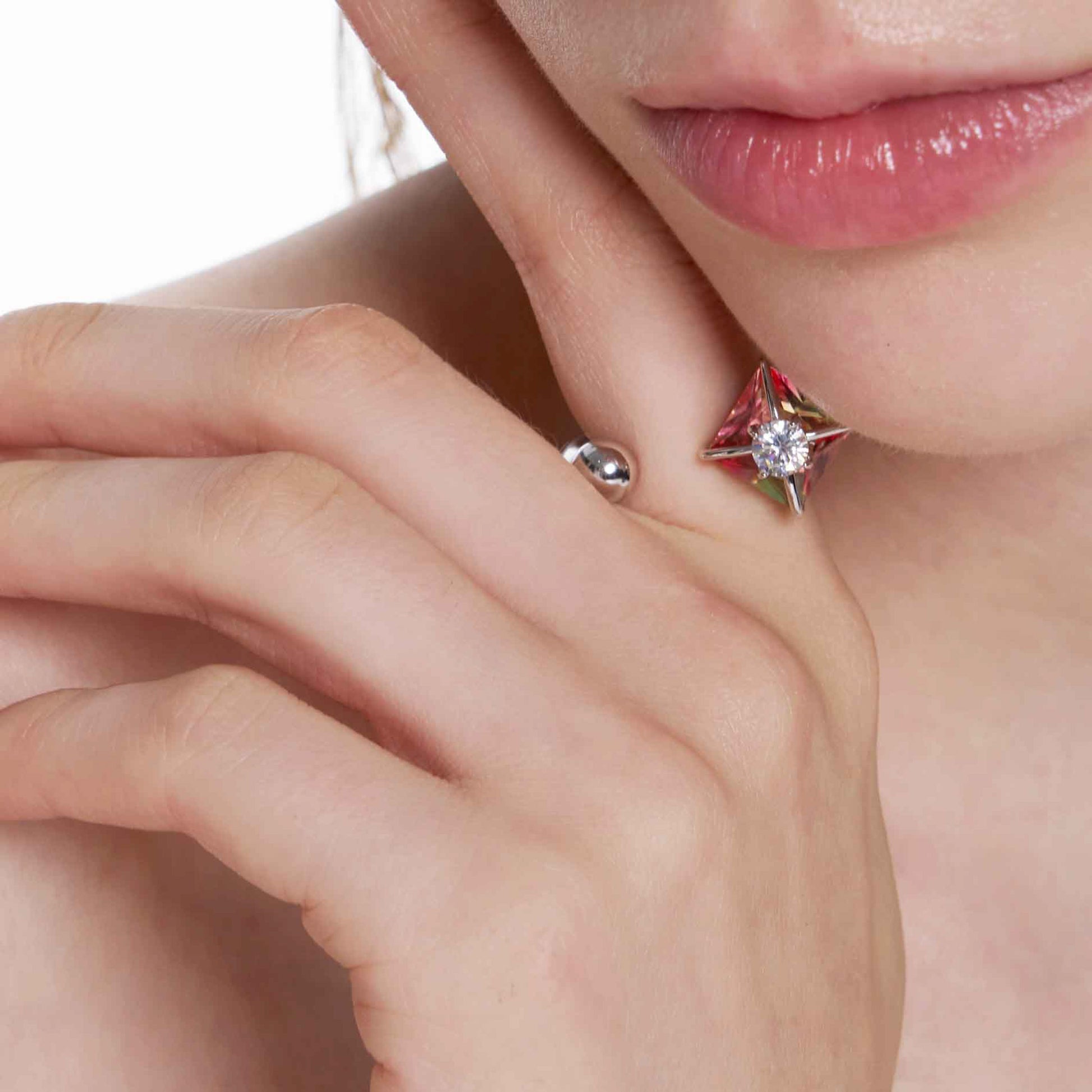 White gold plated 925 sterling silver, tourmaline-colored glass