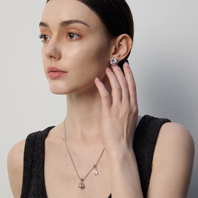 White gold plated brass,Zircon