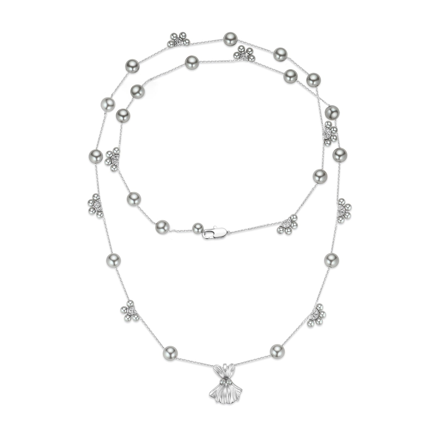 White gold plated brass,Grey Pearl,sandblasting process
